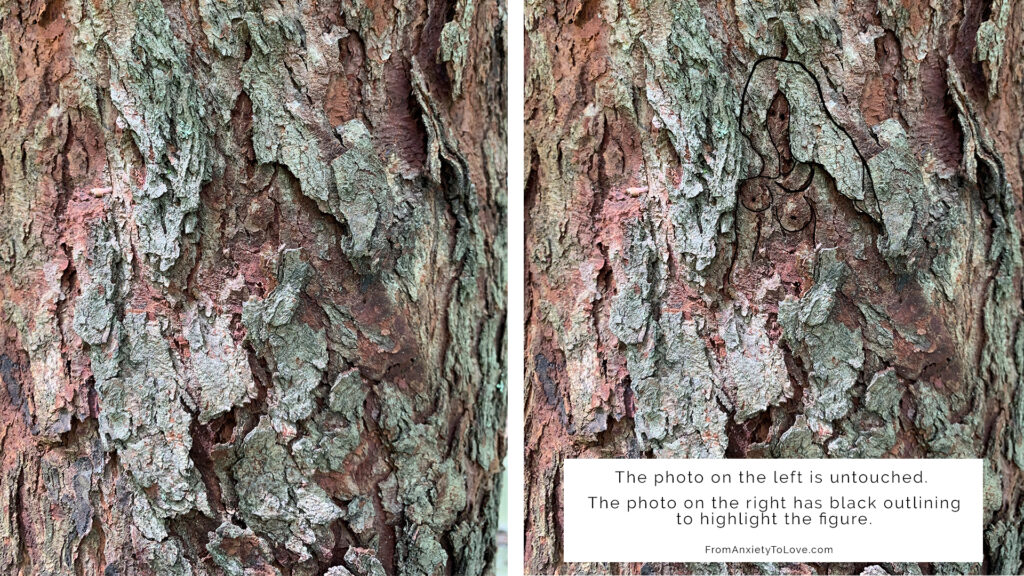 The above photo on the left is untouched. The photo on the right has black outlining to highlight the figure. The photo below is untouched and zoomed in.